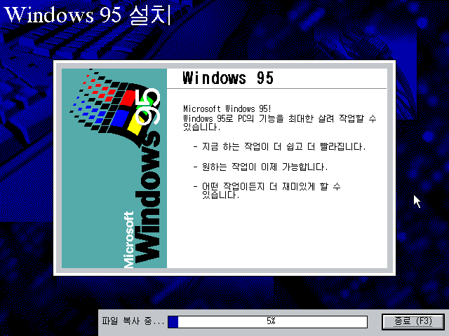 이상 Windows 95 OSR2.5 설치기였습니다.