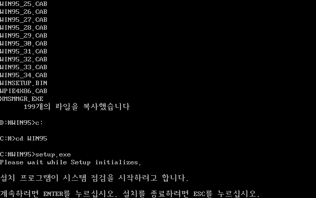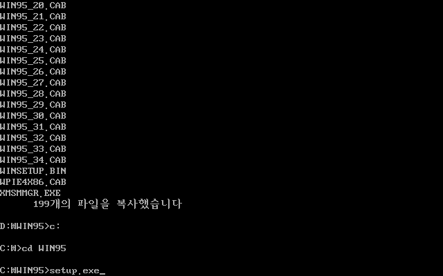 그 후 C드라이브의 WIN95 폴더에서 setup을 진행합니다.
