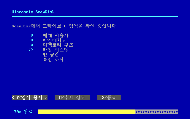 엔터를 누르면 스캔디스크가 하드를 검사합니다.