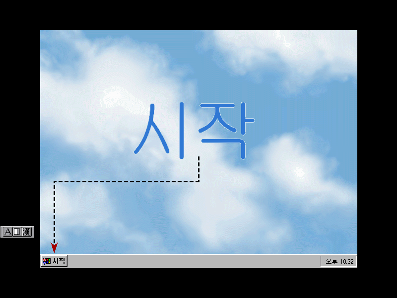 데모 프로그램을 만져보겠습니다. 윈도우 95의 대표 기능이죠, 시작 버튼을 누릅니다.