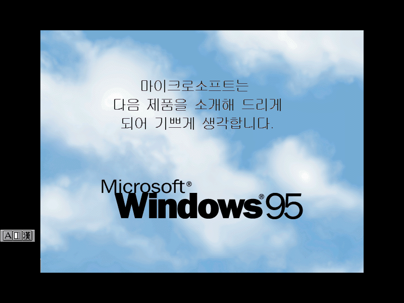 윈도우 95의 파란 하늘이 반겨줍니다. 마이크로소프트가 기쁘게 생각한다네요.