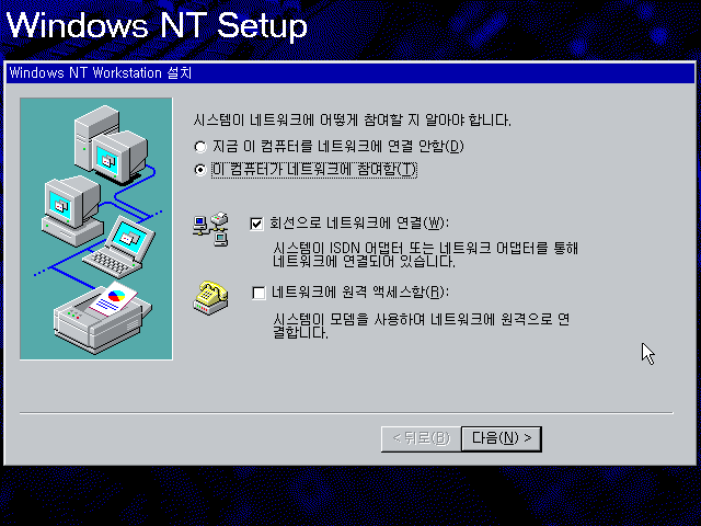예를 누릅니다. NT는 네트워크 설정할 게 많아서 복잡합니다...