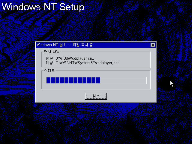 윈도우 NT 설치를 계속합니다.