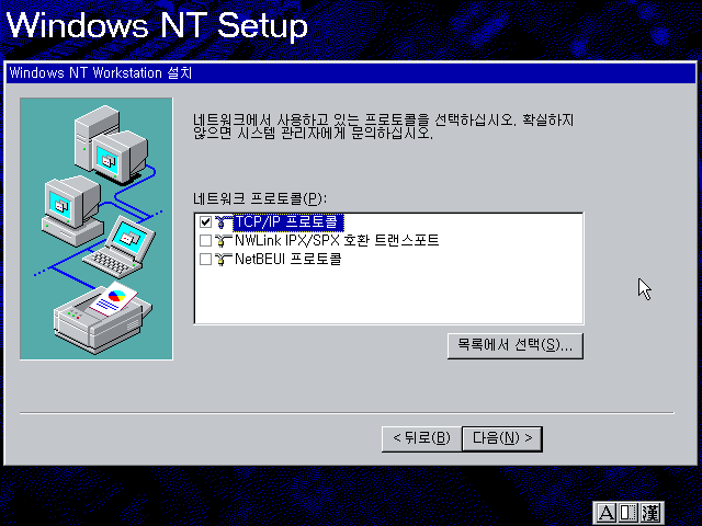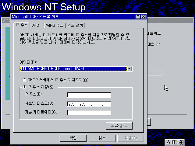 예를 누릅니다. NT는 네트워크 설정할 게 많아서 복잡합니다...