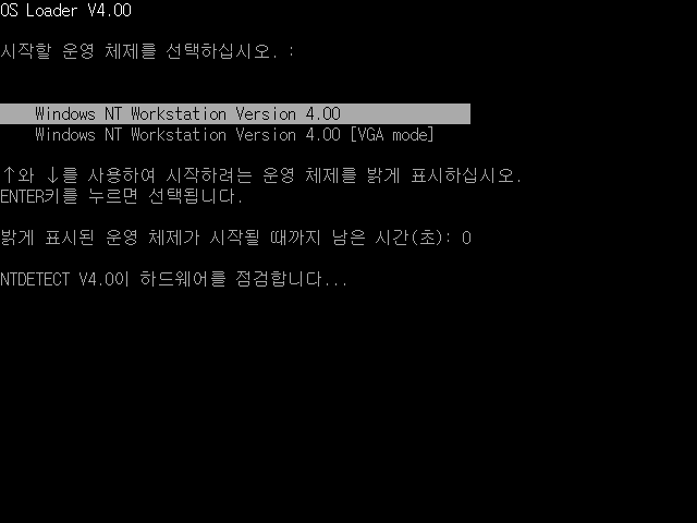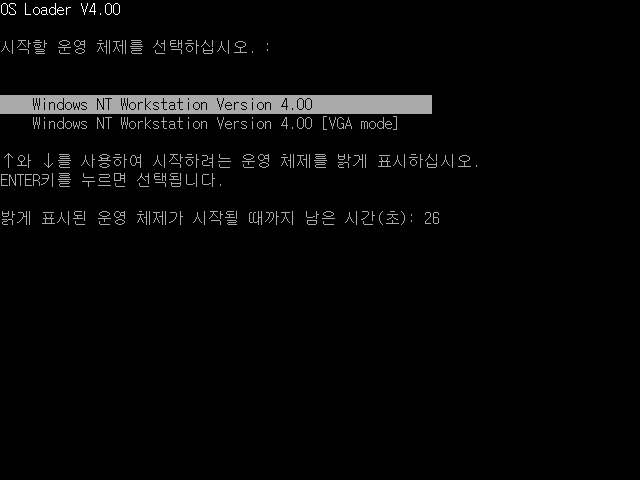부팅 옵션입니다. 윈도우 NT 워크스테이션 4.0을 선택합니다.