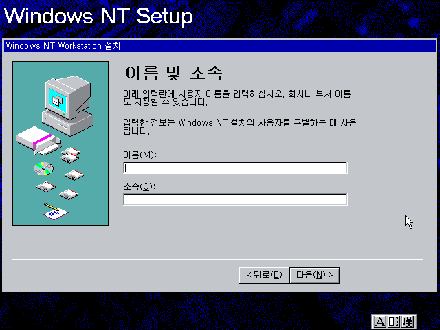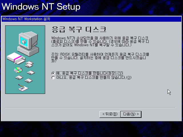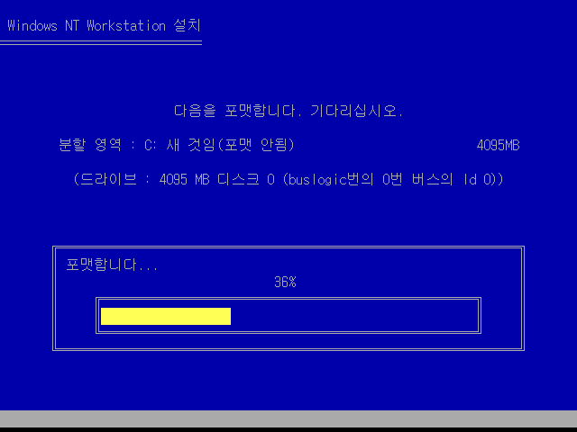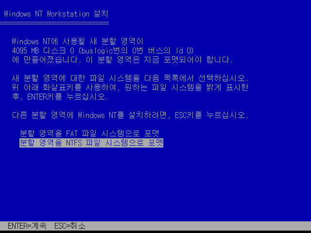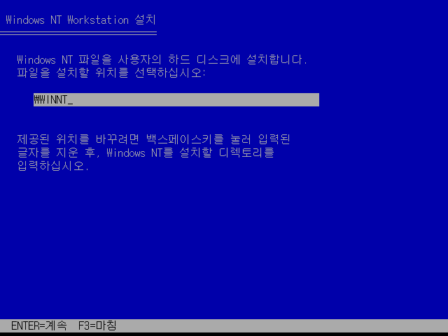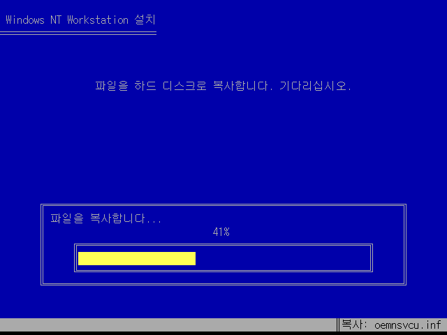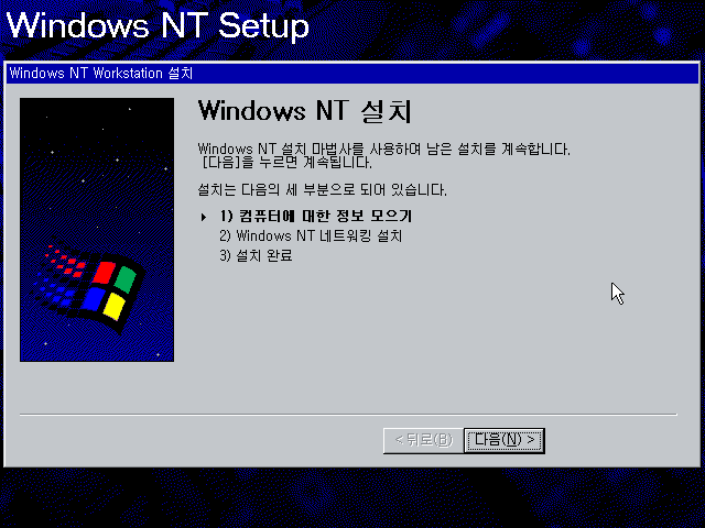 윈도우 NT 설치를 계속합니다.