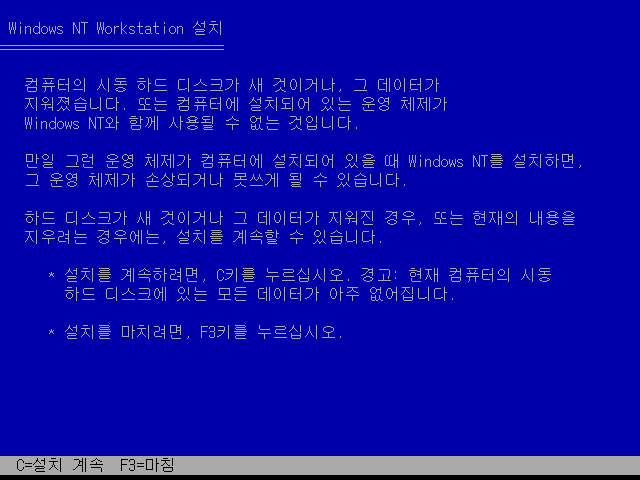 이상 Windows NT Workstation 4.0 설치기였습니다.