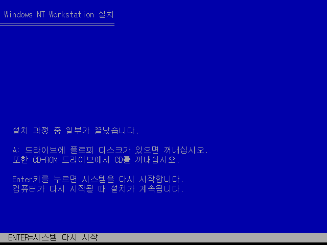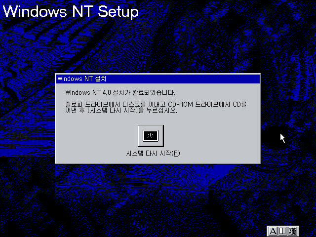 윈도우 NT 4.0 설치가 완료되었습니다. 시스템을 다시 시작합니다.