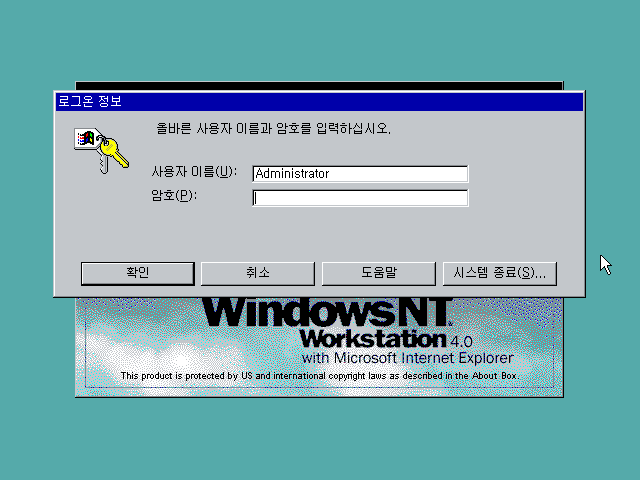서비스 팩 6을 설치한 후 그래픽 드라이버까지 깔고 난 후의 부팅화면입니다. 윈도우 NT 워크스테이션 4.0의 저 부팅화면은 정말 봐도봐도 멋있는 것 같습니다. 우주 배경도 멋지고, 부팅음마저 멋있습니다.
